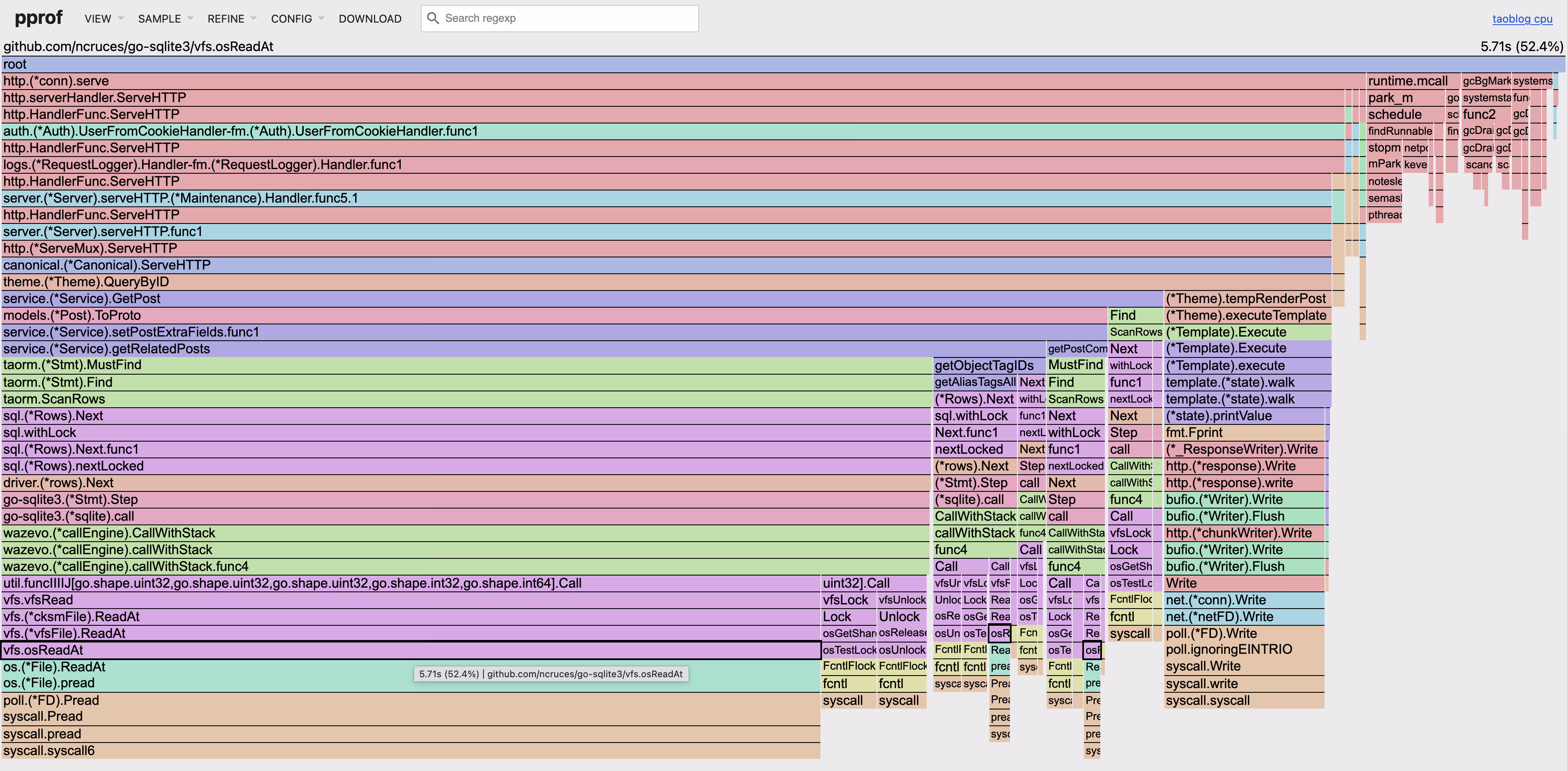 而恰好前几天又正好在群里和雨帆⛵️聊起 sqlite3 的问题,仔细看了前面的对比以及文档,发现 WASM 版本 CGO 版本竟然性能几乎无异,所以就动手切换了。实际上改动的代码只有几行1,因为它俩都是兼容 database/sql