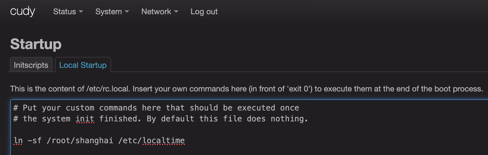 OpenWRT在System页面设置好时区后会把配置数据写到 /etc/config/system 中: