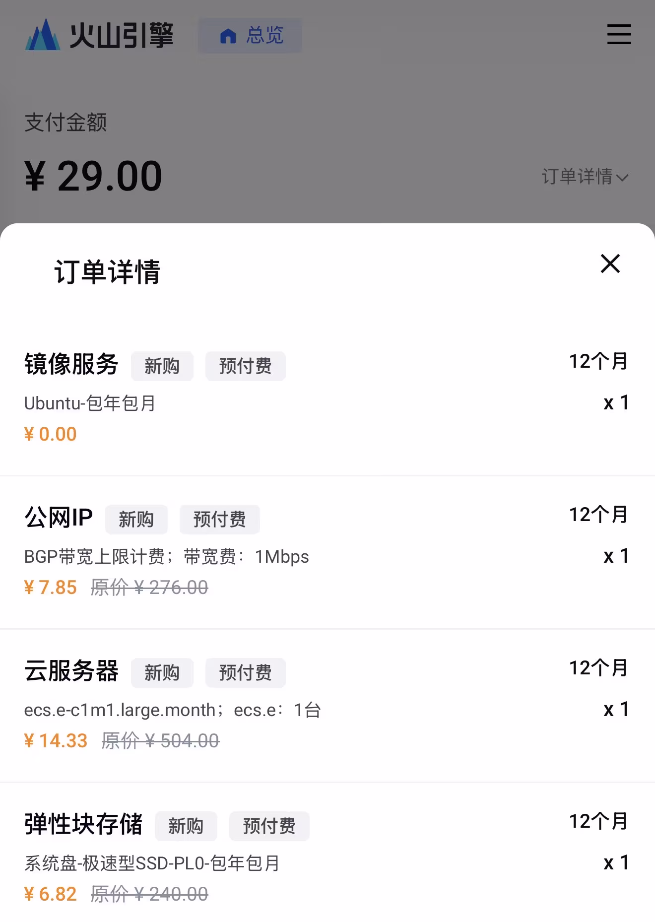 过年的时候在推特上看到有人说火山引擎在搞活动,¥29可以抢一台2C2G40G的服务器,感觉非常便宜。于是注册,0点0分准时抢。连续两天都没有抢到,秒无。第一天甚至抢的时候才告诉我需要实名,浪费心情……